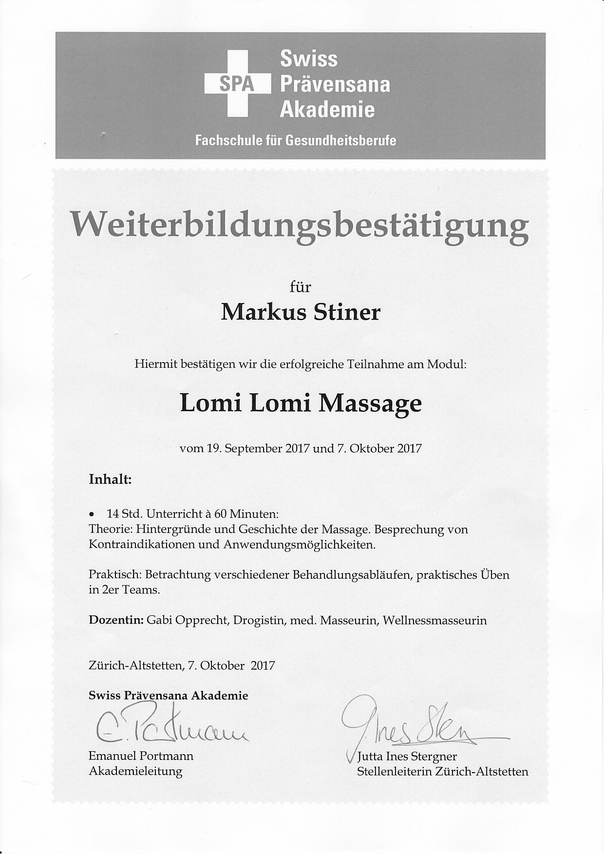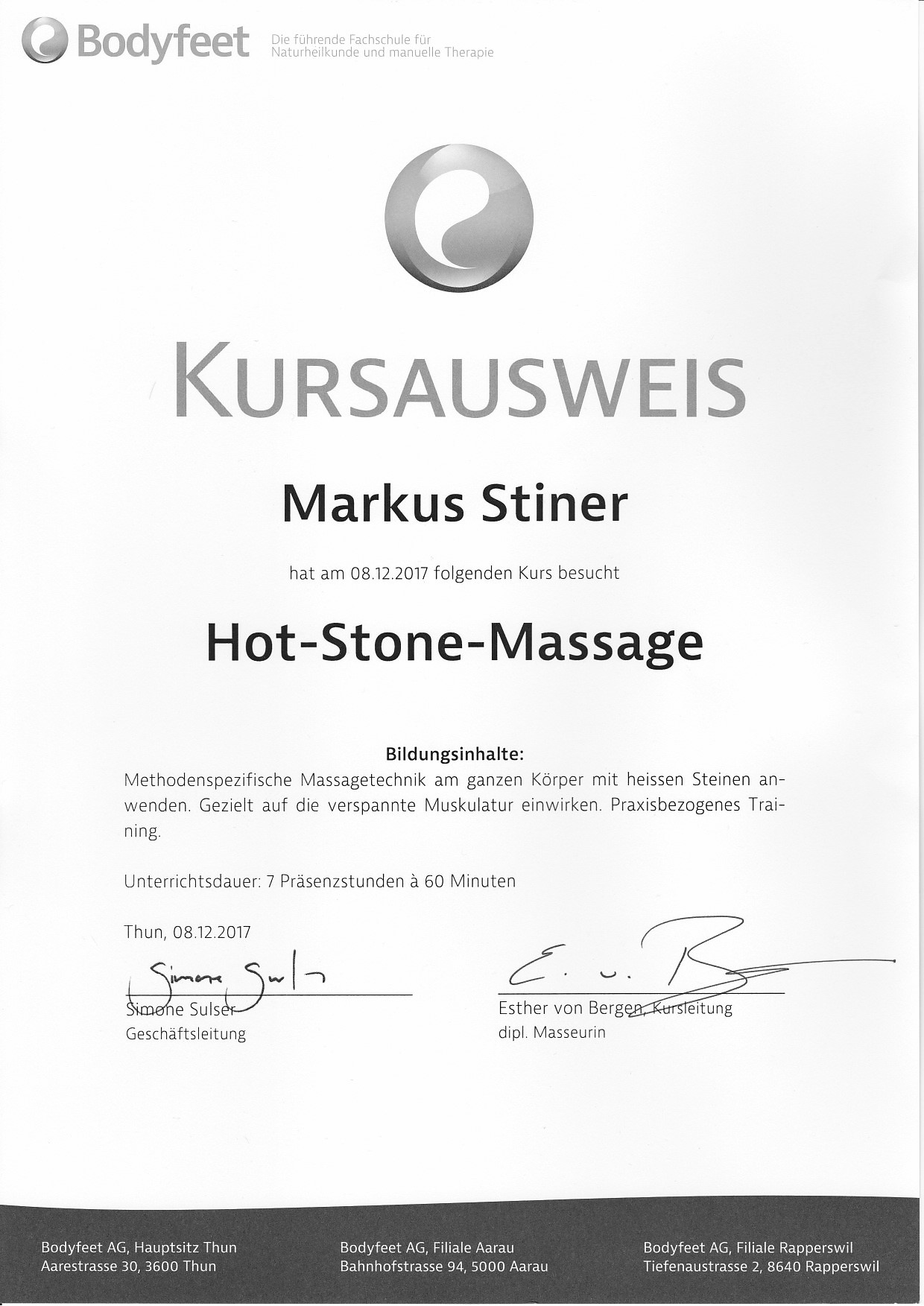 Ich habe das Diplom zum Gesundheitsmasseur zuerst "nur" zum Ausgleich, als Hobby gemacht. Doch wie das Leben so spielt, bin ich ungeplant in einem Hotel gelandet und habe dort 2,5 Jahre als Masseur gearbeitet. Dabei habe ich meine Berufung gefunden und gemerkt, dass ich eine spezielle Offenheit gegenüber fremden Menschen habe. Egal wie sie aussehen oder wie alt sie sind, kann ich auf sie eingehen, ohne Vorurteile, Hemmungen oder Berührungsängste.
